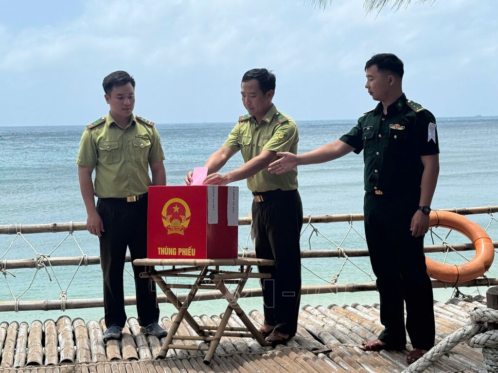 Giữa không gian biển đảo bao la, từng lá phiếu được các cử tri Kiểm lâm cẩn trọng bỏ vào thùng phiếu. Hành động này không chỉ thể hiện ý thức trách nhiệm của mỗi công dân mà còn góp phần làm nên ý nghĩa trọn vẹn của ngày hội non sông nơi hải đảo xa xôi.
