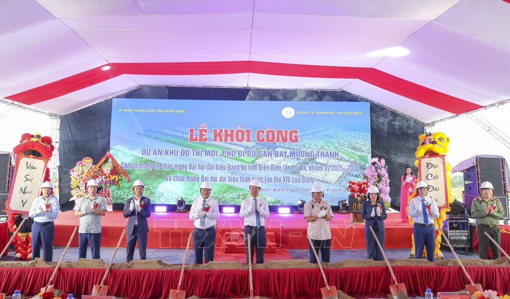 Cuối tháng 9 vừa qua, UBND tỉnh Điện Biên phối hợp với Công ty TNHH Đức Hải Điện Biên đã khởi công Dự án Khu đô thị mới, phố đi bộ sân bay Mường Thanh – công trình được lựa chọn chào mừng Đại hội Đảng bộ tỉnh. Dự án có diện tích gần 7,6ha, ở vị trí đắc địa, nằm cạnh sân bay Điện Biên Phủ. Đây được định hướng là khu đô thị số đầu tiên của tỉnh, kết hợp giữa không gian hiện đại và cảnh quan xanh thân thiện, góp phần mở rộng không gian đô thị, thúc đẩy phát triển thương mại, dịch vụ và du lịch địa phương. Tổng mức đầu tư của dự án gần 700 tỷ đồng.