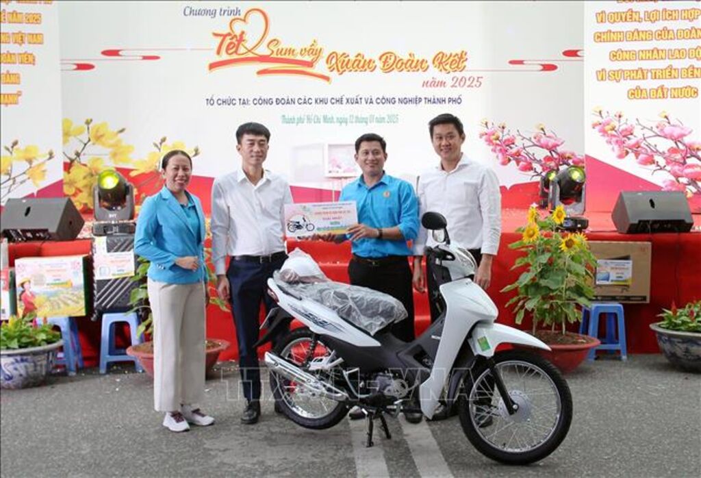 Phó Chủ tịch Công đoàn Khu chế xuất và công nghiệp Thành phố Lâm Ngọc Mẫn thông tin, Tết năm nay, Công đoàn chăm lo cho hơn 23.900 đoàn viên, người lao động với tổng kinh phí gần 24 tỷ đồng. Cùng với việc trao tặng hàng chục nghìn phần quà (phiếu mua sắm, tiền và quà Tết) cho công nhân khó khăn, Công đoàn còn tặng hơn 1.500 vé tàu, 31 vé máy bay cho công nhân lao động nhiều năm liền chưa về quê đón Tết, có sáng kiến cải tiến kỹ thuật mang lại lợi ích cho doanh nghiệp.
