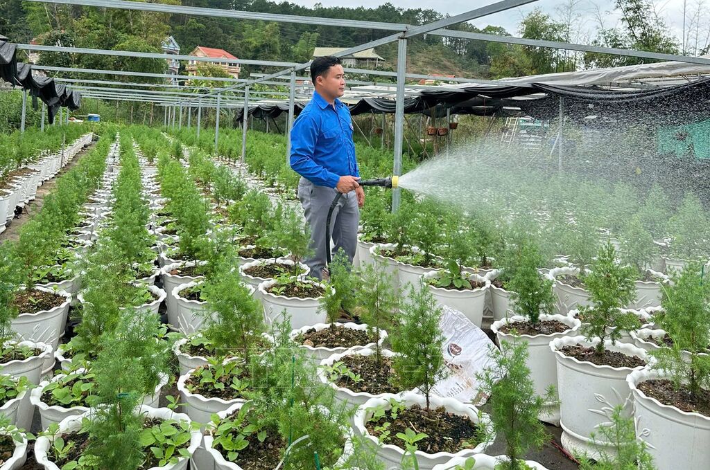 Kết quả vượt ngoài mong đợi: năm đầu tiên, mô hình mang lại 200 triệu đồng doanh thu, có thể nói là một tín hiệu mạnh mẽ để Vũ tiếp tục đầu tư. Năm 2024, anh nâng quy mô, cải thiện nhà lưới, đầu tư thêm 40 triệu đồng từ lợi nhuận, doanh thu đạt 800 triệu đồng. Sang năm 2025, mô hình hoàn thiện hơn, với: 5.000 m² diện tích vườn ươm, 1.000 m² nhà lưới tiêu chuẩn, hệ thống tưới phun sương tự động, 30.000 cây giống trong sản xuất, giá trị mô hình ước tính 5–8 tỷ đồng.