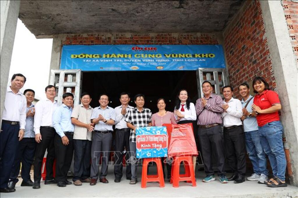 Nhân kỷ niệm 135 năm Ngày sinh Chủ tịch Hồ Chí Minh (19/5/1890 - 19/5/2025), Báo Tin tức và Dân tộc (Thông tấn xã Việt Nam) phối hợp cùng Ủy ban Mặt trận Tổ quốc Việt Nam huyện Vĩnh Hưng, Ngân hàng Agribank chi nhánh Long An và các nhà hảo tâm tổ chức lễ bàn giao 3 nhà Đại đoàn kết và trao 50 phần quà cho học sinh nghèo ở huyện biên giới Vĩnh Hưng.