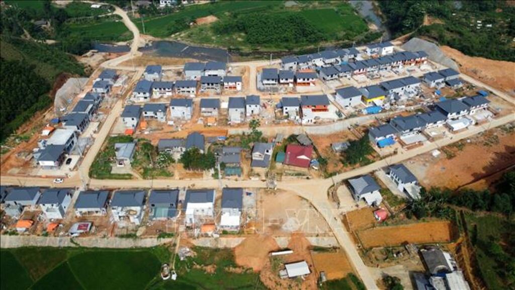 Dự án Khu tái định cư mới khu Nhàng, xã Kim Thượng (Phú Thọ) đang được gấp rút hoàn thành sẽ giúp hàng chục hộ dân vùng sạt lở có nơi ở mới.