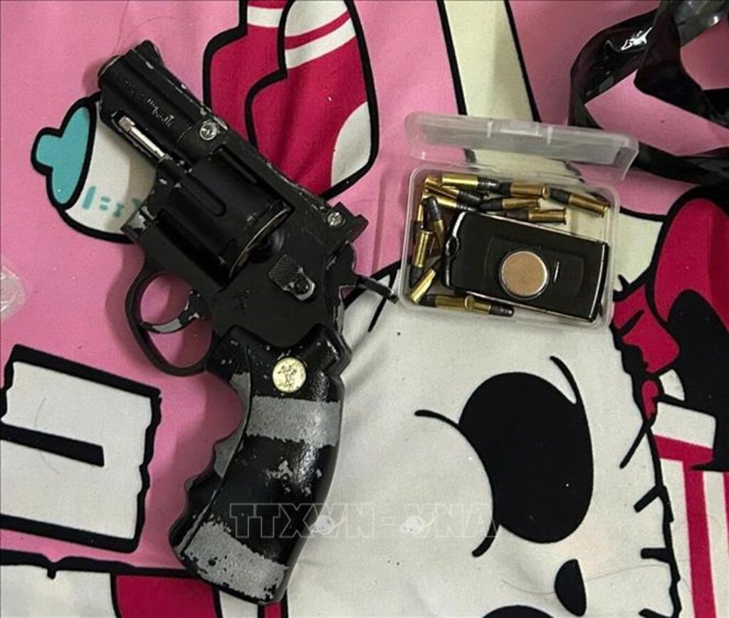 Kiểm tra phòng ngủ của Đ.A.T, Công an phát hiện khẩu súng ngắn cùng 14 viên đạn. Công an phường Kon Tum lập biên bản bắt người phạm tội quả tang đối với Đ.A.T về hành vi tàng trữ trái phép vũ khí quân dụng và niêm phong tang vật. Đ.A.T khai nhận, số tang vật trên là của bạn nhờ cất giữ. Công an phường Kon Tum xác định, V.M.H (27 tuổi, trú phường Kon Tum) và L.H.B.K (nữ, 21 tuổi, trú phường Đăk Cấm) đã đưa súng cho Đ.A.T.