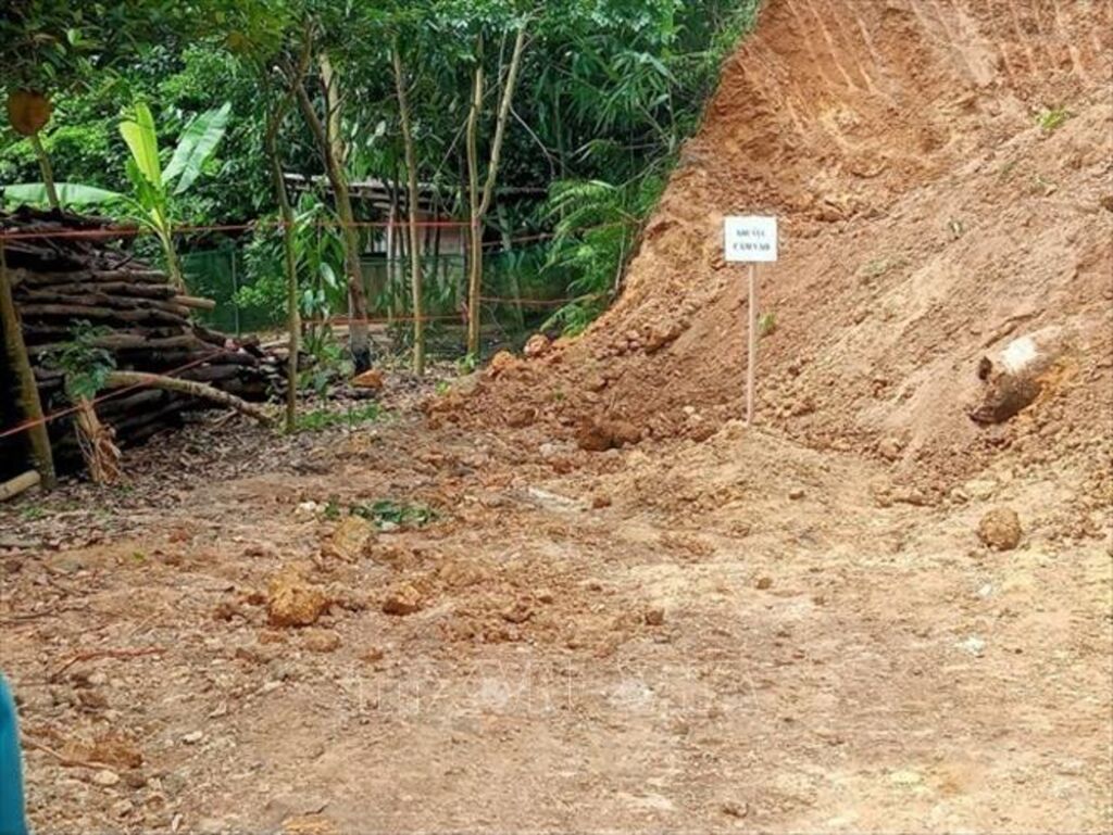 Quả bom được phát hiện nằm trong khu vực đất ở của người dân.