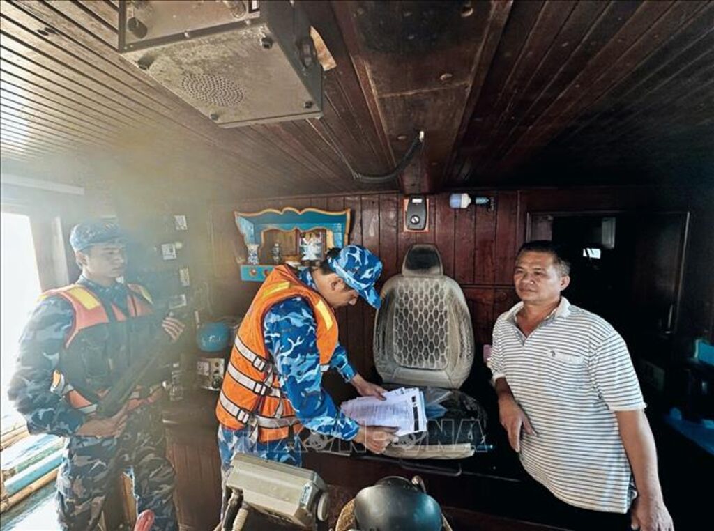 Lực lượng chức năng kiểm tra hồ sơ, giấy tờ tàu vi phạm
