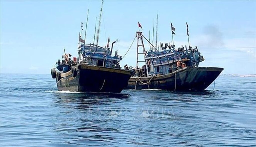 Trước đó, vào lúc 19 giờ 30 phút ngày 13/10, tại vùng biển cách bờ biển phường Phú Thủy 8 hải lý, Tổ tuần tra Đồn Biên phòng Thanh Hải phối hợp với Hải đội 2 phát hiện, bắt giữ tàu cá BTh 95672 TS, do ông Nguyễn Văn Hùng (sinh năm 1976, trú tại phường Phú Thủy, tỉnh Lâm Đồng) làm thuyền trưởng và tàu cá BTh 90016 TS, do ông Nguyễn Văn Dũng (sinh năm 1973, trú tại phường Phú Thủy, tỉnh Lâm Đồng) làm thuyền trưởng, đang có hành vi khai thác thủy sản bằng lưới kéo đôi (giã cào bay) vi phạm quy định về vùng khai thác thủy sản.