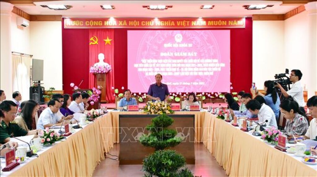 TTXVN - Chiều 21/7, Đoàn giám sát của Quốc hội khóa XV do Phó Chủ tịch Quốc hội, Thượng tướng Trần Quang Phương làm Trưởng đoàn làm việc với lãnh đạo tỉnh Thừa Thiên - Huế về thực hiện các Nghị quyết của Quốc hội đối với ba chương trình mục tiêu quốc gia về xây dựng nông thôn mới giai đoạn 2021 - 2025, giảm nghèo bền vững giai đoạn 2021 - 2025, phát triển kinh tế - xã hội vùng đồng bào dân tộc thiểu số và miền núi giai đoạn 2021 - 2030.