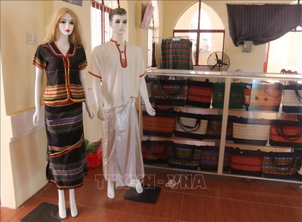 Song song với gốm, làng dệt thổ cẩm Mỹ Nghiệp cũng đang có những bước phát triển mới. Từ đôi bàn tay khéo léo của người phụ nữ Chăm, một hệ sinh thái sản phẩm phong phú đã ra đời, từ quần áo cách tân, khăn choàng tinh xảo đến túi xách thời thượng. Chị Nguyễn Ngọc Bảo Thanh, du khách đến từ Thành phố Hồ Chí Minh chia sẻ: "Tôi rất bất ngờ với mẫu mã sản phẩm và đã chọn cho mình một chiếc khăn và túi xách có màu sắc, hoa văn đặc trưng của văn hóa Chăm được thiết kế đẹp mắt, rất dễ phối đồ khi đi làm hoặc dạo phố. Sở hữu những món đồ này khiến tôi cảm thấy như đang mang theo một phần di sản bên mình".