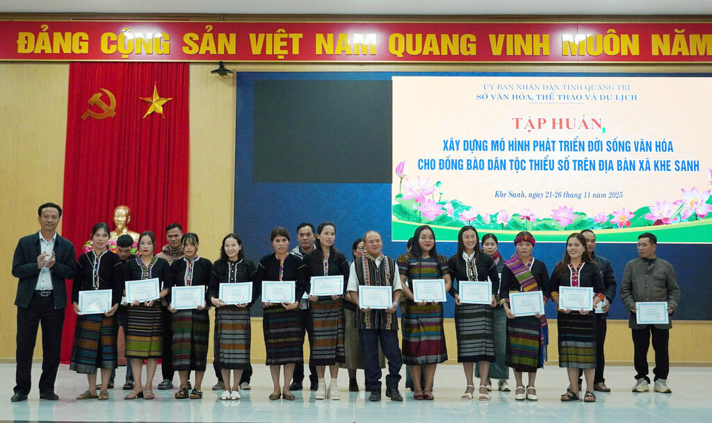 Chiều 26/11, Sở Văn hóa, Thể thao và Du lịch tỉnh Quảng Trị tổ chức bế mạc Lớp tập huấn, bồi dưỡng chuyên môn nghiệp vụ, truyền dạy văn hóa phi vật thể cho đồng bào dân tộc Bru - Vân Kiều tại xã Khe Sanh.