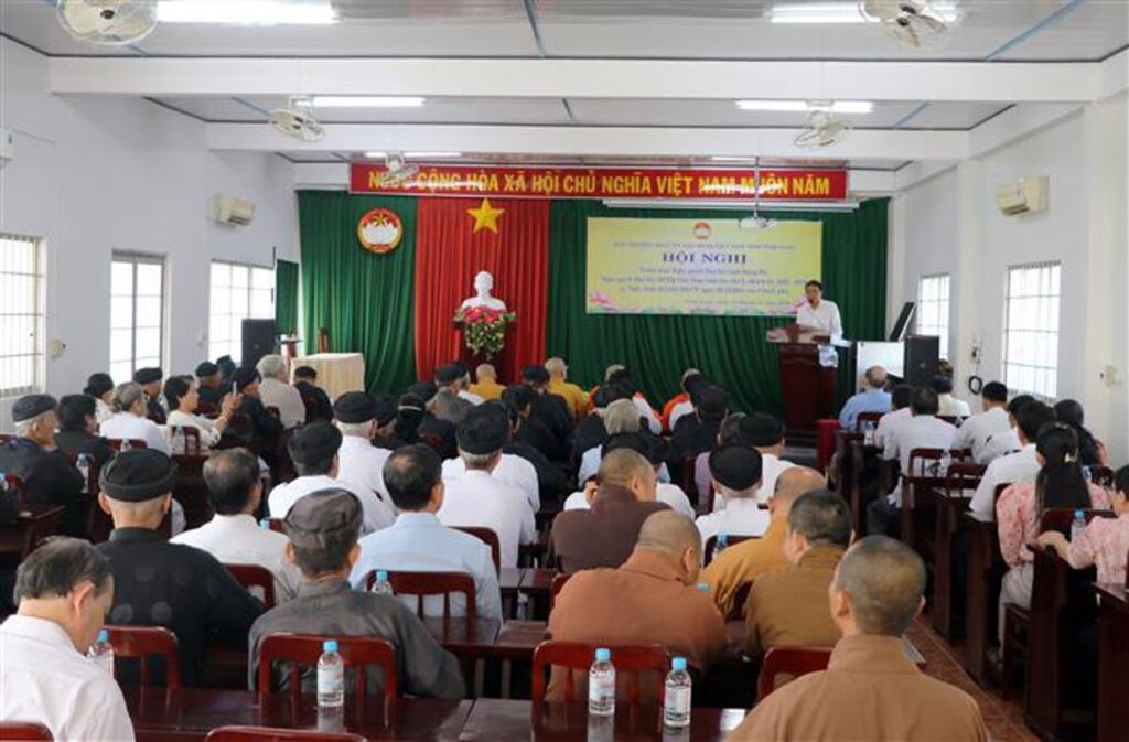 Tại hội nghị, các đại biểu được triển khai những nội dung trọng tâm của Nghị quyết Đại hội đại biểu Đảng bộ tỉnh Vĩnh Long lần thứ nhất, nhiệm kỳ 2025 – 2030; Nghị quyết đại hội đại biểu Mặt trận Tổ quốc Việt Nam tỉnh Vĩnh Long lần thứ nhất, nhiệm kỳ 2025- 2030; Nghị định số 95/2023/NĐ-CP, ngày 29/12/2023 của Chính phủ quy định chi tiết một số điều và biện pháp thi hành Luật tín ngưỡng, tôn giáo.