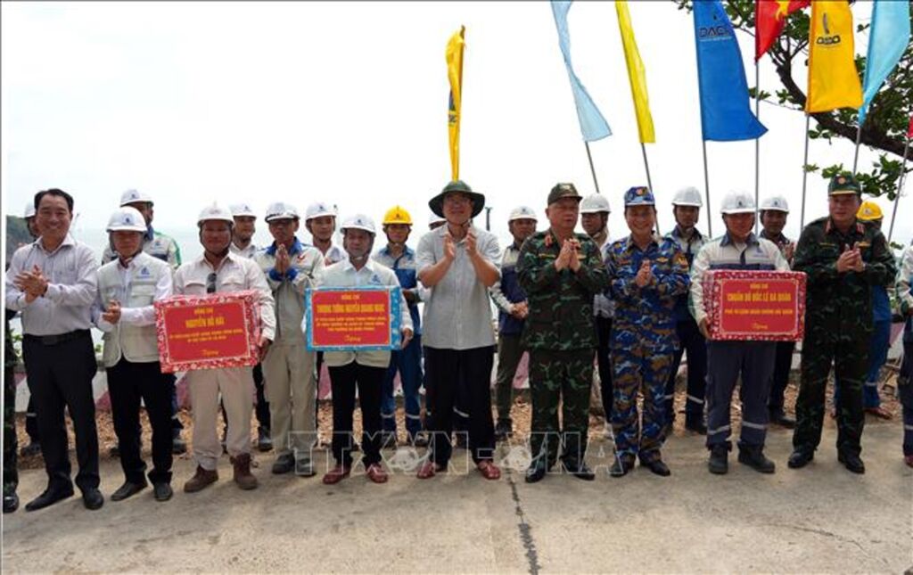 Đoàn công tác của Bộ Quốc phòng đã trực tiếp khảo sát hệ thống hạ tầng, đường giao thông và tiến độ thi công các dự án trọng điểm trên đảo như: Cảng tổng hợp lưỡng dụng Hòn Khoai, dự án cầu vượt biển nối đất liền với đảo. Đại diện các đơn vị thi công trên đảo Hòn Khoai đã báo cáo những thuận lợi, khó khăn trong quá trình triển khai cũng như điều kiện sinh hoạt, công tác của các lực lượng đang làm nhiệm vụ trên đảo.