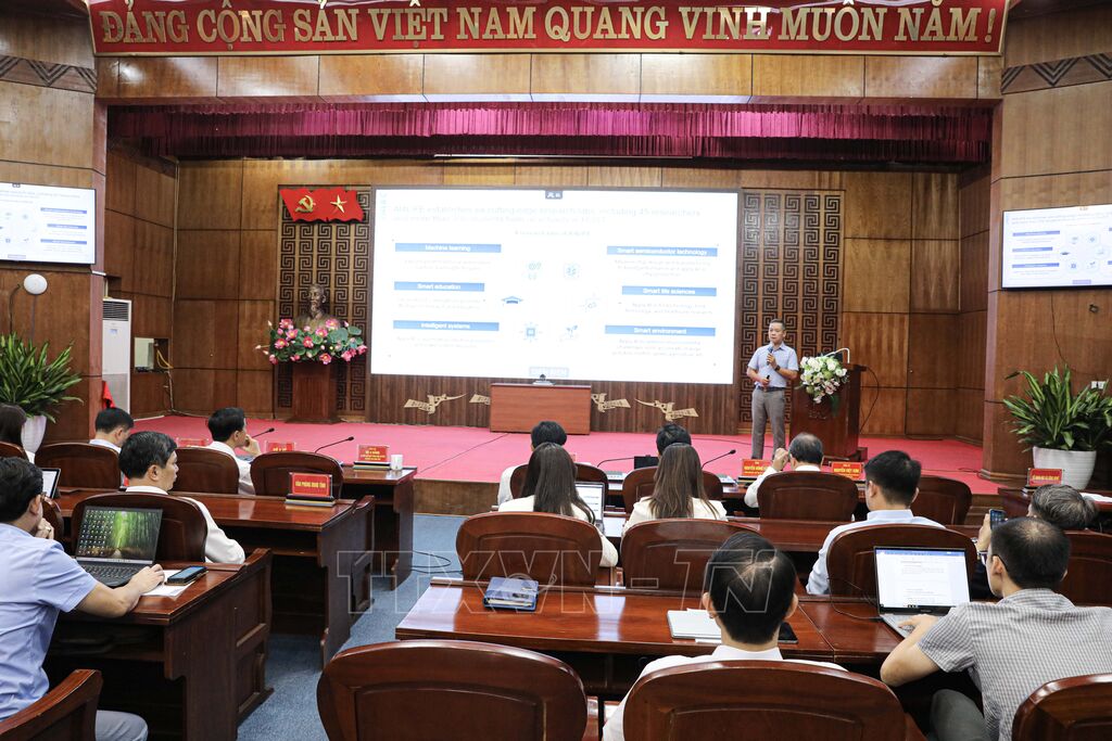 Các đại biểu được nghe chuyên gia trình bày về hoạt động của Viện Nghiên cứu và ứng dụng trí tuệ nhân tạo (AI), giải pháp ứng dụng trí tuệ nhân tạo trong y tế, chăm sóc sức khỏe, . . .