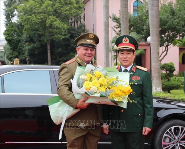 (TTXVN) Ngày 8/12, tại Hà Nội, Thượng tướng Nguyễn Tân Cương, Ủy viên Trung ương Đảng, Ủy viên Thường vụ Quân ủy Trung ương, Tổng Tham mưu trưởng Quân đội nhân dân Việt Nam, Thứ trưởng Bộ Quốc phòng tiếp xã giao Trưởng đoàn quân đội một số nước tham dự Triển lãm Quốc phòng quốc tế Việt Nam 2022.