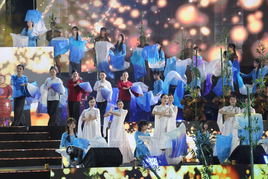 Trong tối khai mạc, nhân dân và du khách được thưởng thức chương trình nhệ thuật với chủ đề "Ninh Bình - Linh khí nghìn năm vươn mình tỏa sáng". Hàng trăm nghệ sĩ, diễn viên đã tái hiện sinh động những giá trị văn hóa, lịch sử qua các tiết mục biểu diễn công phu, giàu bản sắc./.