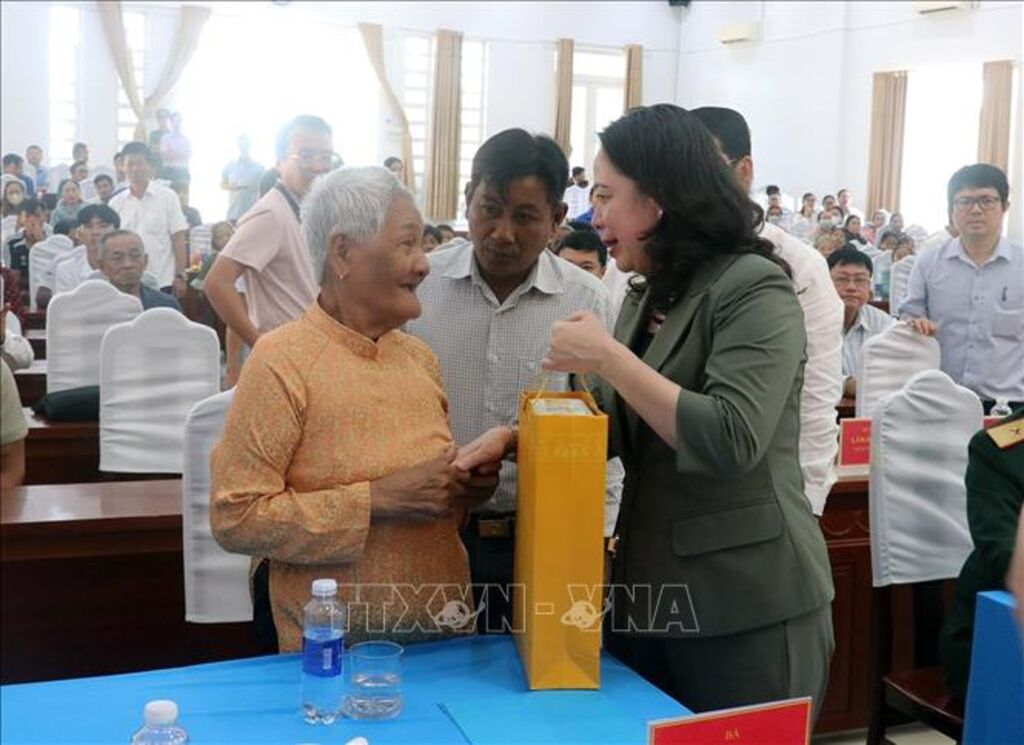 Phó Chủ tịch nước Võ Thị Ánh Xuân cùng đoàn công tác và các đại biểu đến dâng hương tại Đền thờ Anh hùng Liệt sĩ và Thanh niên xung phong hy sinh trên tuyến đường 1C; tặng 90 suất quà cho Bà mẹ Việt Nam anh hùng, gia đình chính sách, hộ nghèo, trẻ em hoàn cảnh khó khăn tại huyện Giang Thành.
