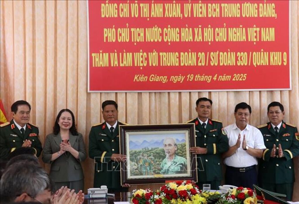 Cùng ngày, Phó Chủ tịch nước Võ Thị Ánh Xuân cùng đoàn công tác và các đại biểu đến thăm, tặng quà và trồng cây lưu niệm tại Trung đoàn 20, Sư đoàn 330, Quân khu 9 tại thành phố Hà Tiên./.