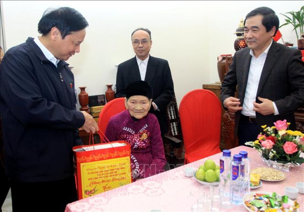 (TTXVN) Nhân dịp đón Tết Nguyên đán Quý Mão, chiều 8/1, Đoàn công tác của Trung ương do Phó Chủ tịch Quốc hội Nguyễn Khắc Định làm Trưởng đoàn đã đến thăm, tặng quà các gia đình chính sách, người có công, hộ nghèo, hộ cận nghèo, hộ có hoàn cảnh khó khăn, công nhân, người lao động tại tỉnh Thái Bình.