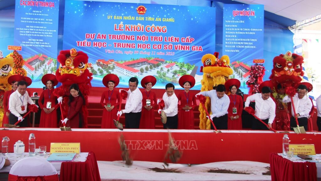 Cùng ngày, tỉnh An Giang khởi công xây dựng trường bán trú, nội trú liên cấp Tiểu học - Trung học cơ sở Giang Thành (xã Giang Thành) quy mô 30 lớp học, 1.000 học sinh; trường Tiểu học và Trung học cơ sở nội trú Khánh An (xã Khánh Bình) quy mô 45 lớp học, 1.500 học sinh. Các trường học này đầy đủ khu học tập, nội trú, bếp ăn, sinh hoạt văn hóa và thể thao... thi công xây dựng, dự kiến hoàn thành vào tháng 8/2026.