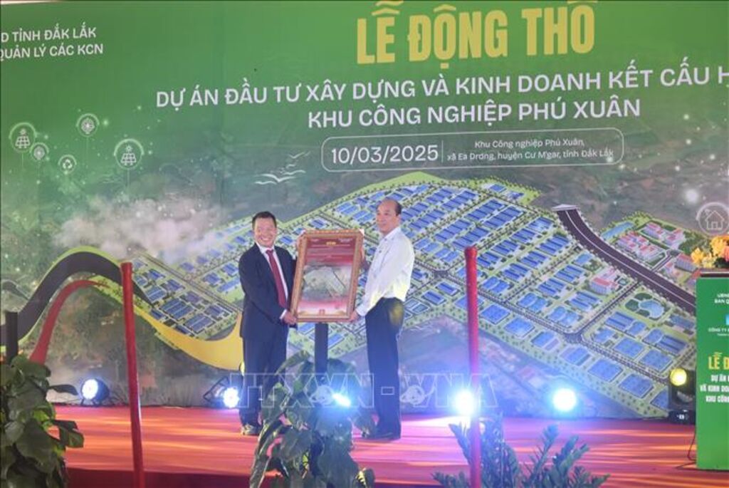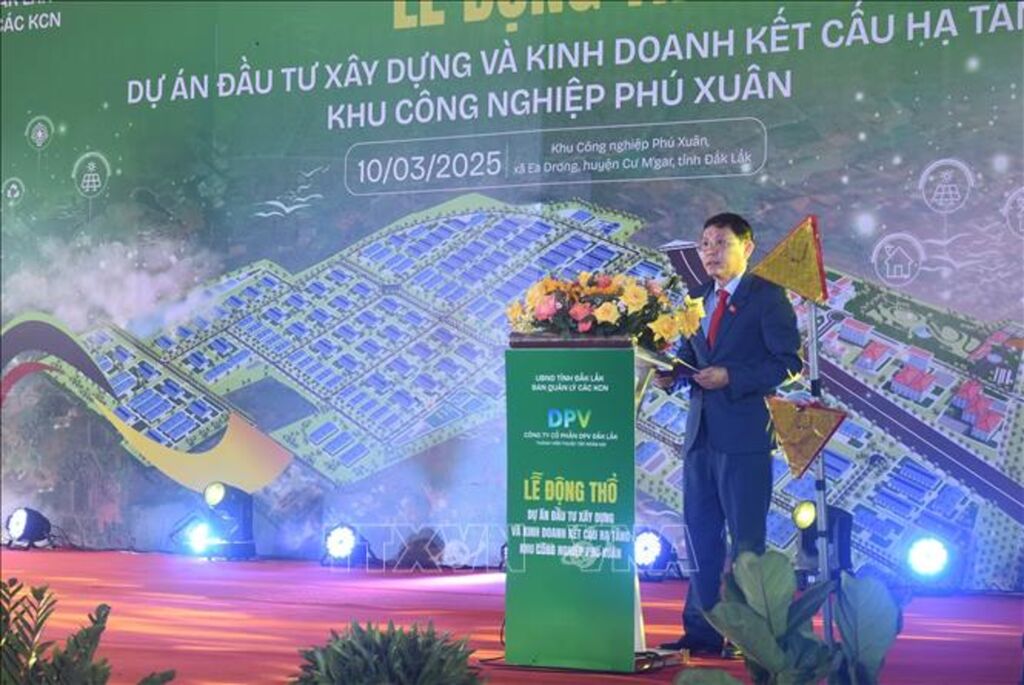 Chiều 10/3, UBND tỉnh Đắk Lắk phối hợp với Công ty Cổ phần DPV Đắk Lắk (thành viên của Tập đoàn KDI Holdings) tổ chức Lễ động thổ Dự án đầu tư xây dựng và kinh doanh kết cấu hạ tầng Khu công nghiệp Phú Xuân (tại xã Ea Drơng, huyện Cư M’gar, tỉnh Đắk Lắk). Ủy viên Trung ương Đảng, Phó Thủ tướng Chính phủ Trần Hồng Hà tham dự Lễ động thổ.
