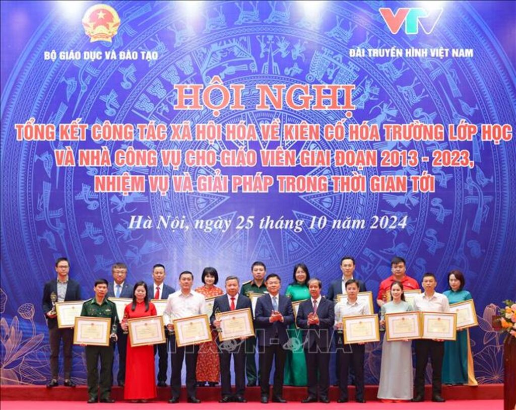 Sáng 25/10, Bộ Giáo dục và Đào tạo đã tổ chức Hội nghị tổng kết công tác xã hội hóa về kiên cố hóa trường lớp học và nhà công vụ cho giáo viên giai đoạn 2013-2023, nhiệm vụ và giải pháp trong thời gian tới. Hội nghị được tổ chức theo hình thức trực tiếp kết hợp trực tuyến tại điểm cầu 63 tỉnh, thành phố.