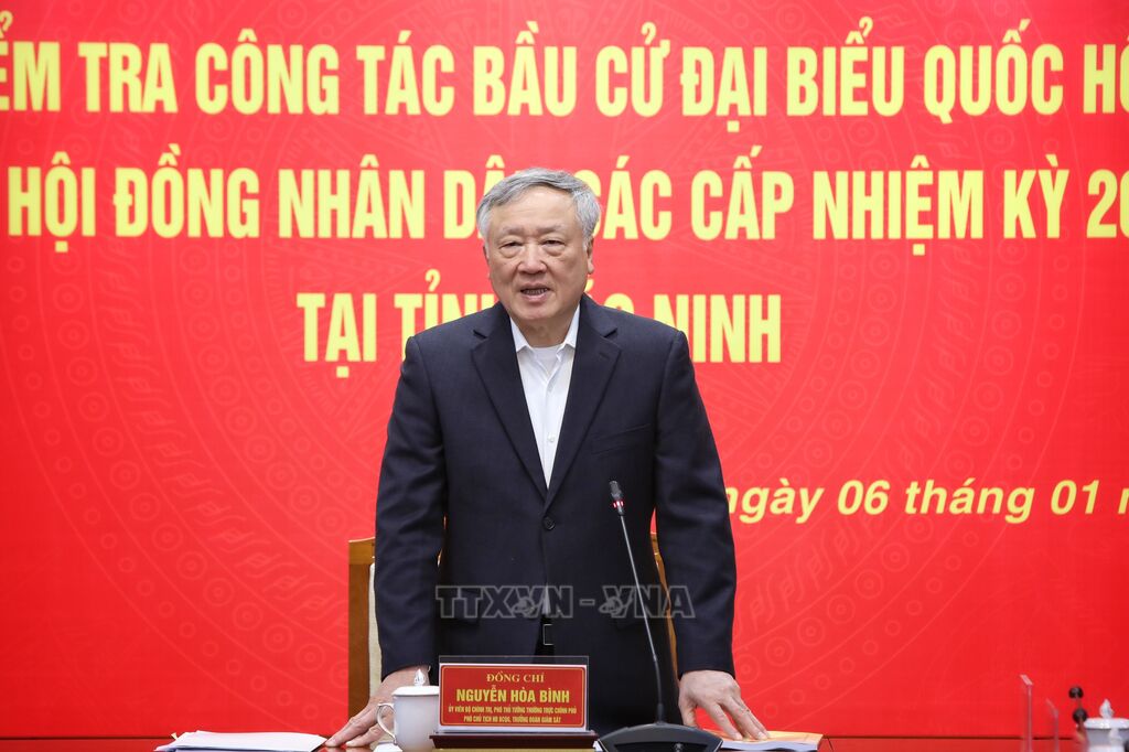 Chiều 6/1, Đoàn Kiểm tra, giám sát của Trung ương do Ủy viên Bộ Chính trị, Phó Thủ tướng Thường trực Chính phủ, Phó Chủ tịch Hội đồng Bầu cử quốc gia Nguyễn Hòa Bình làm Trưởng đoàn đến kiểm tra, giám sát công tác bầu cử đại biểu Quốc hội khóa XVI và đại biểu Hội đồng nhân dân các cấp nhiệm kỳ 2026-2031 tại Bắc Ninh. Cùng đi với Đoàn còn có Ủy viên Trung ương Đảng, Bộ trưởng Bộ Nội vụ Đỗ Thanh Bình.