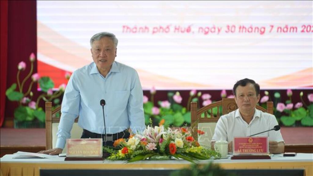 Phó Thủ tướng Thường trực Chính phủ Nguyễn Hòa Bình đánh giá cao những nỗ lực phát triển kinh tế, xã hội của thành phố Huế trong 6 tháng đầu năm; nổi bật là thúc đẩy đầu tư công, sẵn sàng triển khai các dự án trọng điểm quốc gia và công tác bảo tồn, phát huy giá trị di sản văn hóa, tổ chức các kỳ Festival.