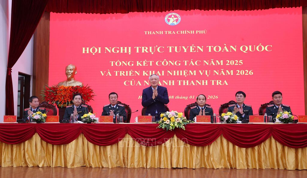 Chiều 8/1, Thanh tra Chính phủ tổ chức Hội nghị trực tuyến toàn quốc tổng kết công tác năm 2025 và triển khai phương hướng, nhiệm vụ trọng tâm năm 2026.