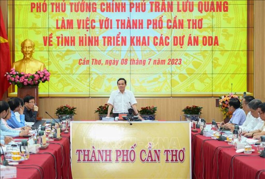 TTXVN - Ngày 8/7, Phó Thủ tướng Chính phủ Trần Lưu Quang chủ trì làm việc với UBND thành phố Cần Thơ về tình hình triển khai các dự án ODA trên địa bàn thành phố.