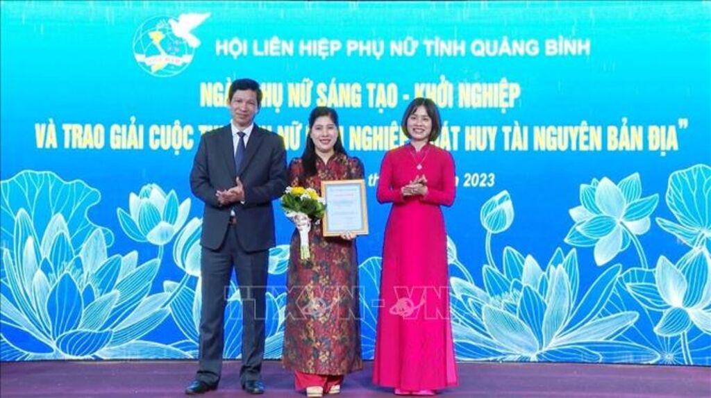 TTXVN - Chiều 18/10, tại thành phố Đồng Hới (tỉnh Quảng Bình), Hội Liên hiệp Phụ nữ tỉnh tổ chức Ngày phụ nữ sáng tạo - khởi nghiệp và trao giải Cuộc thi “Phụ nữ khởi nghiệp, phát huy tài nguyên bản địa” cấp tỉnh năm 2023.