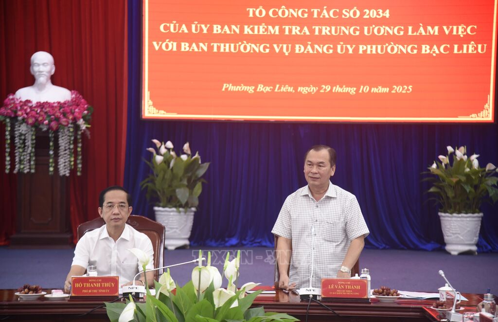 Ngày 29/10, Đoàn công tác do ông Lê Văn Thành, Phó Chủ nhiệm Ủy ban Kiểm tra Trung ương làm Trưởng đoàn đã có buổi làm việc với Ban Thường vụ Đảng ủy phường Bạc Liêu (tỉnh Cà Mau) về kết quả trong triển khai chính quyền địa phương 2 cấp.