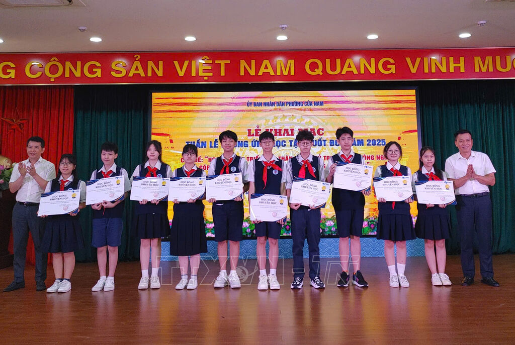 Tại lễ phát động, UBND phường Cửa Nam đã trao 10 suất học bổng tiếng Anh cho học sinh trên địa bàn./.
