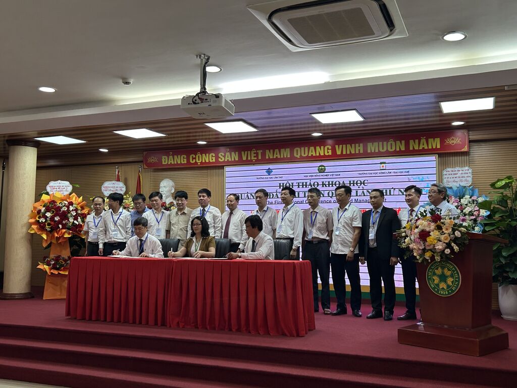 Tại Hội thảo, Ban Tổ chức trao cờ luân lưu cho đại diện Trường Đại học Nông lâm, Đại học Huế, đơn vị đăng cai tổ chức Hội thảo khoa học quản lý đất đai toàn quốc lần thứ II năm 2024 và tặng quà lưu niệm các đơn vị tham gia tổ chức hội thảo. Đại diện Học viện Nông nghiệp Việt Nam, Trường Đại học Cần Thơ, Trường Đại học Nông lâm, Đại học Huế đã ký biên bản ghi nhớ hợp tác./.
