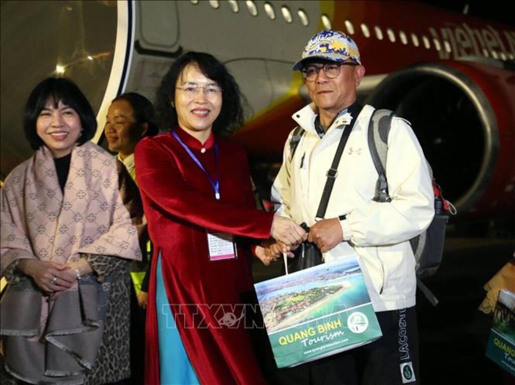 Chuyến bay VJ7173, TPE-VDH cất cánh từ sân bay quốc tế Đài Bắc (Đài Loan, Trung Quốc) lúc 16 giờ 40 phút, đến sân bay Đồng Hới lúc 19 giờ 40 phút cùng ngày 31/3 với 38 hành khách. Ngay sau khi máy bay hạ cánh, Giám đốc Sở Văn hóa, Thể thao và Du lịch tỉnh Quảng Bình Nguyễn Thị Bích Thủy đã chào đón và tặng hoa đến đoàn khách, phi hành đoàn.