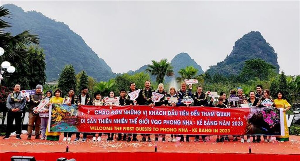 Đoàn du khách đầu tiên “xông đất” Di sản thiên nhiên thế giới Vườn Quốc gia Phong Nha – Kẻ Bàng ngày đầu năm 2023 gồm 45 người, trong đó có 17 du khách quốc tế đến từ các nước Úc và Ấn Độ; các du khách còn lại đến từ các tỉnh, thành phố trong nước.