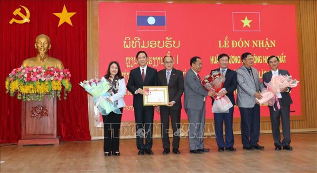 Thừa ủy quyền của Chủ tịch nước Cộng hòa Dân chủ Nhân dân Lào, Đoàn đại biểu tỉnh Champasak đã trao tặng Huân chương Lao động hạng Nhất cho tỉnh Quảng Trị.