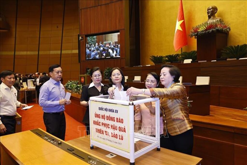 Sáng 24/11, trước khi tiến hành phiên họp, Quốc hội đã tưởng niệm đồng bào tử vong do bão lũ và tiến hành quyên góp ủng hộ nhân dân vùng thiên tai sớm vượt qua khó khăn, mất mát.