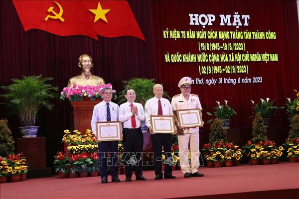TTXVN - Nhân kỷ niệm 78 năm Quốc khánh nước Cộng hòa xã hội chủ nghĩa Việt Nam (2/9/1945 - 2/9/2023), ngày 31/8, tỉnh Kiên Giang tổ chức Lễ đón nhận Huân chương Bảo vệ Tổ quốc hạng Ba; truy tặng danh hiệu vinh dự Nhà nước cho 13 Bà mẹ Việt Nam Anh hùng; tặng thưởng Huân chương Độc lập hạng Nhì và hạng Ba cho 7 gia đình liệt sỹ.