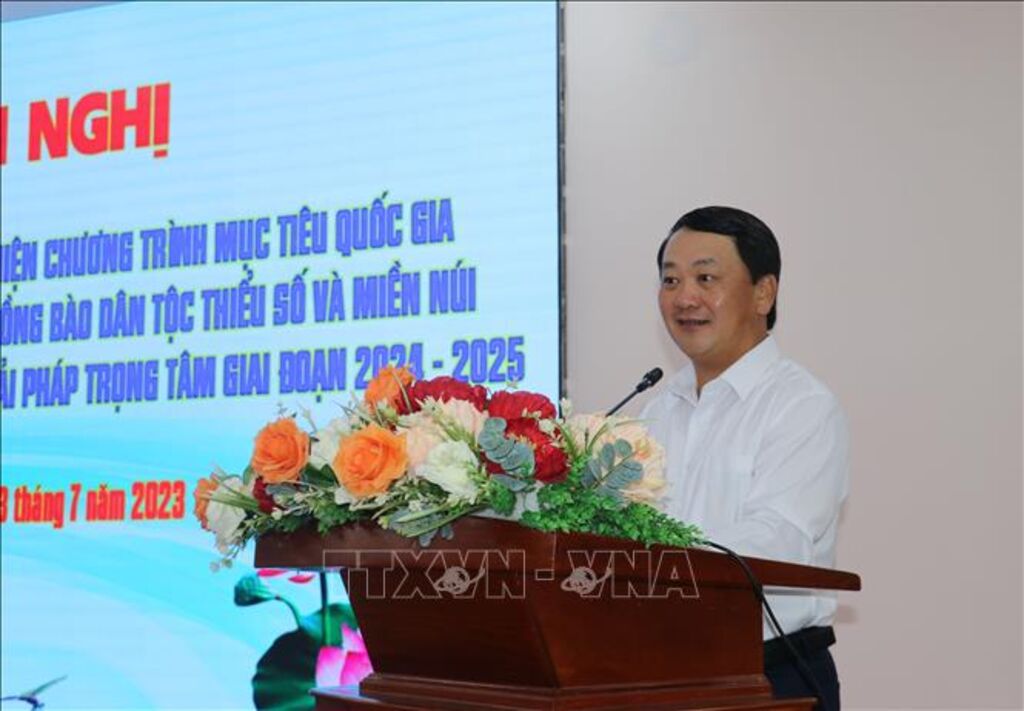 Ông Hầu A Lềnh, Ủy viên Trung ương Đảng, Bộ trưởng, Chủ nhiệm Ủy ban Dân tộc, Phó Trưởng ban Chỉ đạo Trung ương các Chương trình mục tiêu quốc gia giai đoạn 2021-2025 cho biết, việc triển khai Chương trình mục tiêu quốc gia phát triển kinh tế-xã hội vùng đồng bào dân tộc thiểu số và miền núi tại các địa phương mới chỉ thực hiện được hơn một năm, thời gian còn lại khoảng 2,5 năm nhưng khối lượng công việc còn lại rất lớn. Các dự án cần được triển khai đồng bộ đến tận thôn, bản, người dân, đòi hỏi có giải pháp quyết liệt, quyết tâm, công tác phối hợp phải rất chặt chẽ. Trong đó, Trung ương tập trung vào việc thể chế hóa, ban hành văn bản hướng dẫn, tăng cường kiểm tra, tháo gỡ khó khăn cho địa phương, thậm chí có cơ chế đặc thù đẩy nhanh tiến độ giải ngân.