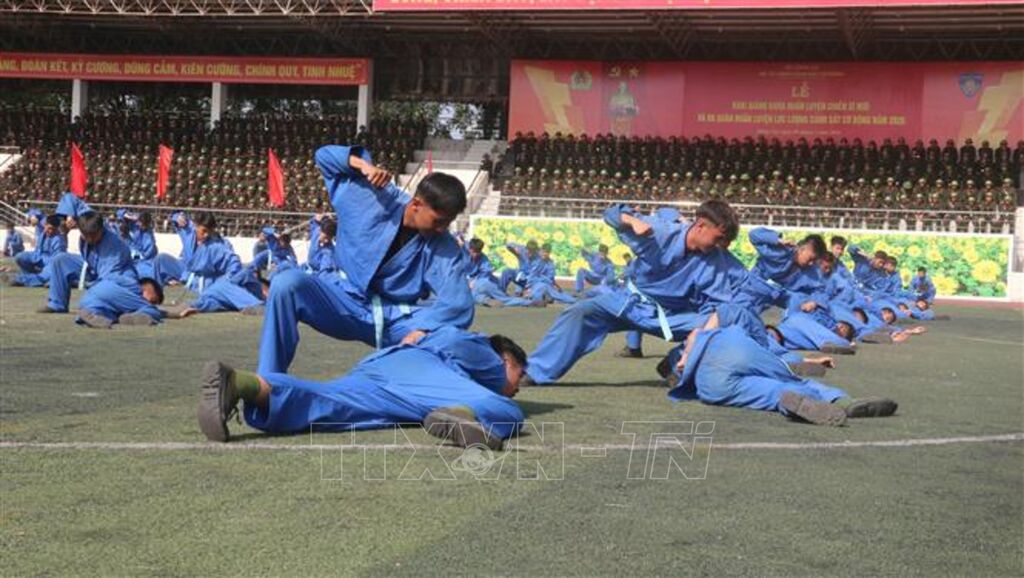 Tại buổi lễ, các học viên đã thực hiện báo cáo kết quả huấn luyện bằng các bài tập võ thuật, kỹ thuật, chiến thuật Công an nhân dân, thể hiện tinh thần kỷ luật, sự phối hợp nhịp nhàng và khả năng xử lý tình huống linh hoạt. Những nội dung biểu diễn được chuẩn bị công phu, phản ánh quá trình rèn luyện nghiêm túc, bài bản của học viên trong suốt thời gian huấn luyện.