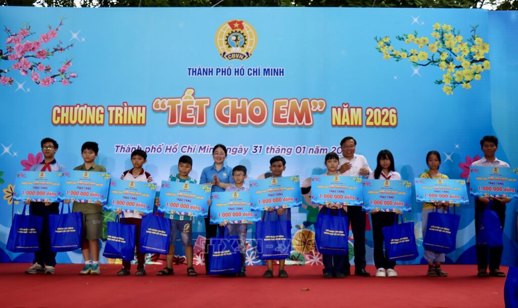Chiều 31/1, Liên đoàn Lao động Thành phố Hồ Chí Minh tổ chức chương trình "Tết cho em", chăm lo hỗ trợ 900 em thiếu nhi là con đoàn viên, người lao động, nhất là những trường hợp có hoàn cảnh khó khăn, con công nhân lao động mồ côi. Đây là hoạt động thiết thực, mang thông điệp hành trình yêu thương của những ngày Xuân an vui tới các em thiếu nhi.