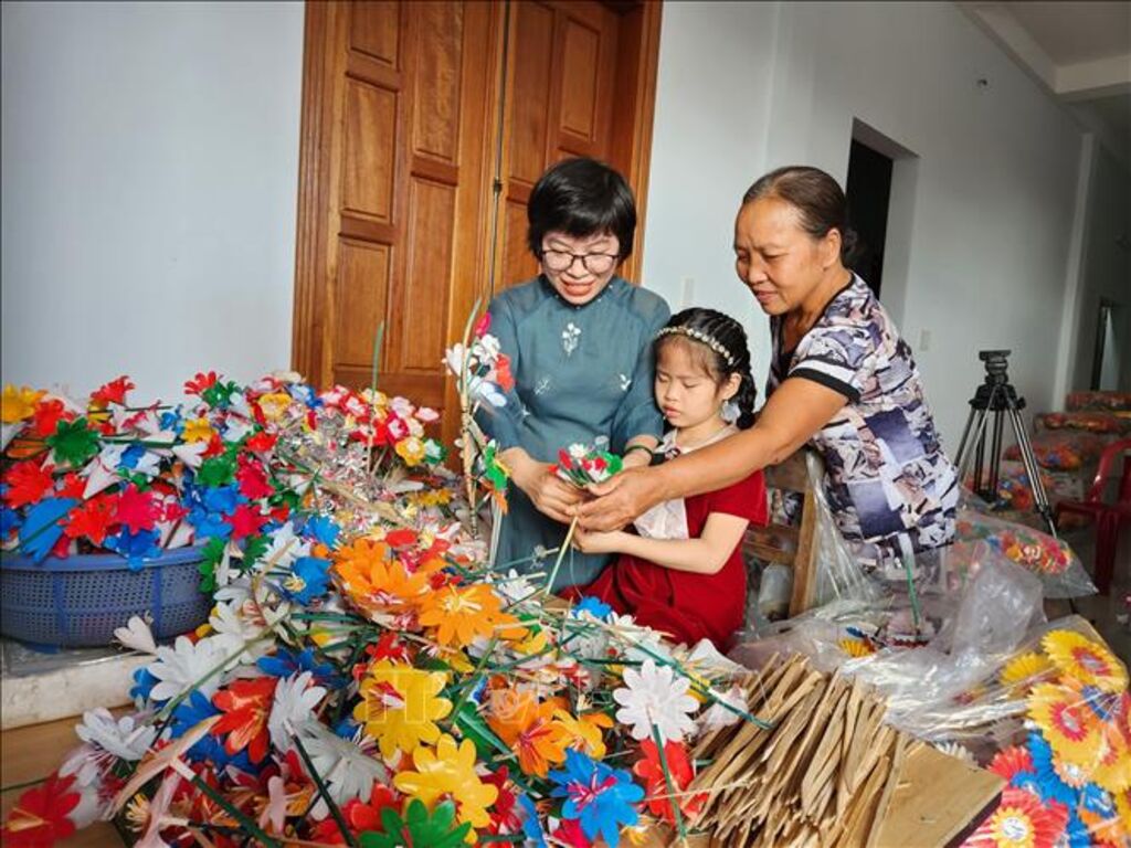 TTXVN - Mỗi khi Xuân về, làng hoa giấy Thanh Tiên (xã Phú Mậu, thành phố Huế, tỉnh Thừa Thiên - Huế) lại tất bật vào vụ với những bông hoa rực rỡ sắc màu để phục vụ Tết Nguyên đán. Bàn tay khéo léo, nghệ thuật cùng tấm lòng trân quý nghề truyền thống của người dân nơi đây đã góp phần gìn giữ và xây dựng thương hiệu cho làng nghề có tuổi đời hơn 300 năm.