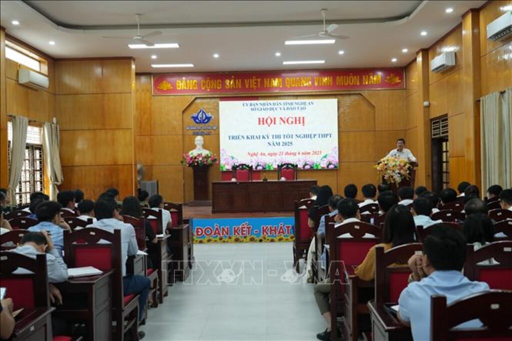 Kỳ thi tốt nghiệp Trung học phổ thông năm 2025, theo kế hoạch sẽ được tổ chức vào ngày 25 - 27/6. Tại Nghệ An, kỳ thi năm nay có sự tham gia của 40.235 thí sinh tại 72 điểm thi, trong đó có 843 thí theo Chương trình Giáo dục phổ thông 2006). Để chuẩn bị kỳ thi này, Nghệ An đã huy động 6.594 cán bộ, giáo viên, nhân viên tham gia làm nhiệm vụ các điểm thi. Trước kỳ thi năm nay, ngành giáo dục đã chỉ đạo các nhà trường dạy học hoàn thành Chương trình, ôn tập cho học sinh. Bên cạnh đó, Sở đã tổ chức thi thử và hướng dẫn học sinh thi thử trên hệ thống thi trực tuyến cho học sinh lớp 12 để giúp học sinh thêm kiến thức, kỹ năng làm bài thi. Toàn ngành phát động phong trào thi đua “90 ngày đêm quyết tâm đạt kế quả cao trong Kỳ thi tốt nghiệp trung học phổ thông năm 2025” và tổ chức hàng nghìn buổi dạy thêm miễn phí.