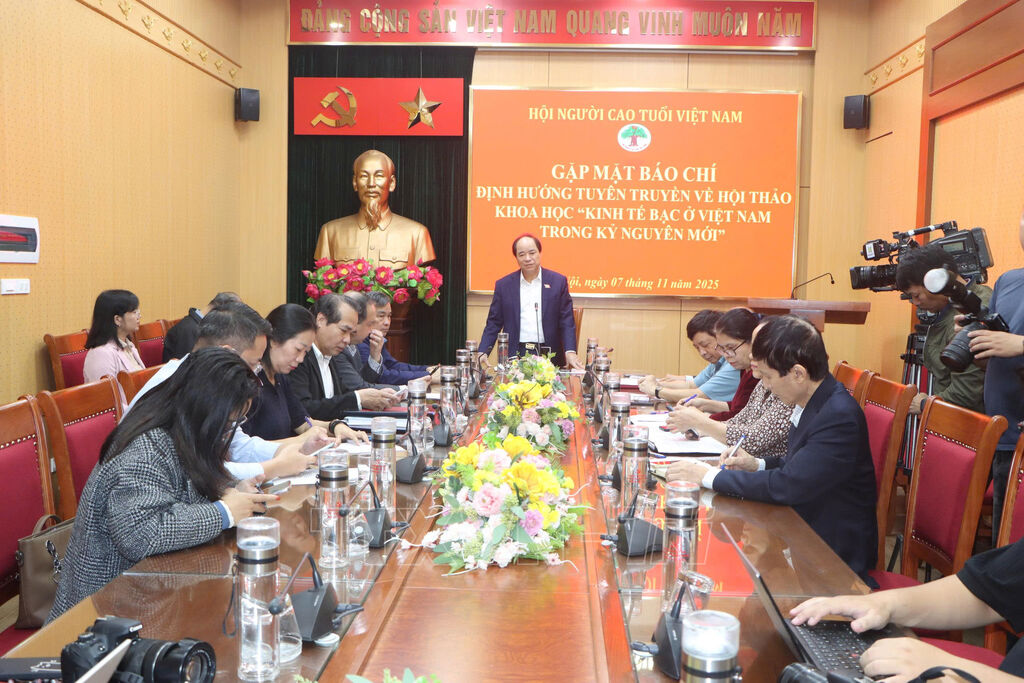 Hội thảo khoa học với chủ đề "Kinh tế bạc ở Việt Nam trong kỷ nguyên mới" sẽ diễn ra ngày 15/11/2025 tại Trung tâm Hội nghị quốc tế (số 11 Lê Hồng Phong, Hà Nội). Thông tin được Trung ương Hội Người cao tuổi Việt Nam công bố tại cuộc gặp gỡ báo chí sáng 7/11.