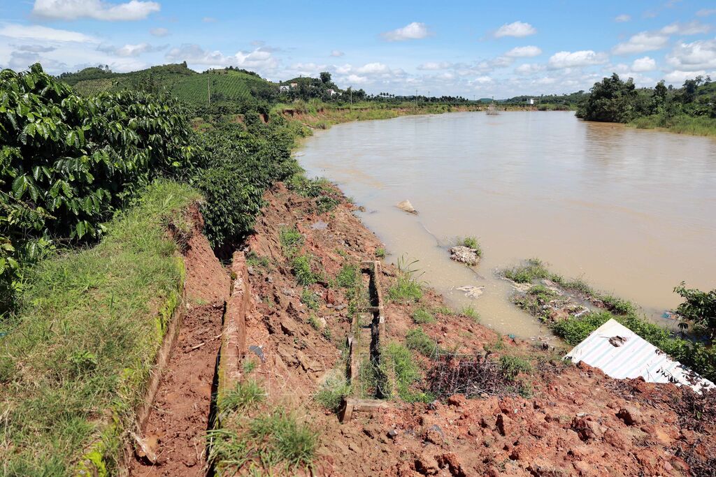 Tình trạng sạt lở ven sông Krông Nô (đoạn qua xã Nâm Nung, tỉnh Lâm Đồng) tiếp tục diễn biến phức tạp, khiến nhiều công trình hạ tầng thiết yếu như đường giao thông nội đồng, hệ thống kênh mương, đất đai ven sông… bị cuốn theo dòng nước.