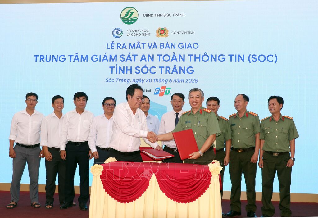 Trung tâm Giám sát an toàn thông tin tỉnh Sóc Trăng tỉnh Sóc Trăng do Tập đoàn FPT triển khai, là bước đi chiến lược nhằm đảm bảo an toàn vận hành liên tục cho các hệ thống điện tử trọng yếu. Tại buổi lễ, trung tâm đã chính thức được bàn giao từ Sở Khoa học và Công nghệ sang Công an tỉnh Sóc Trăng quản lý./.