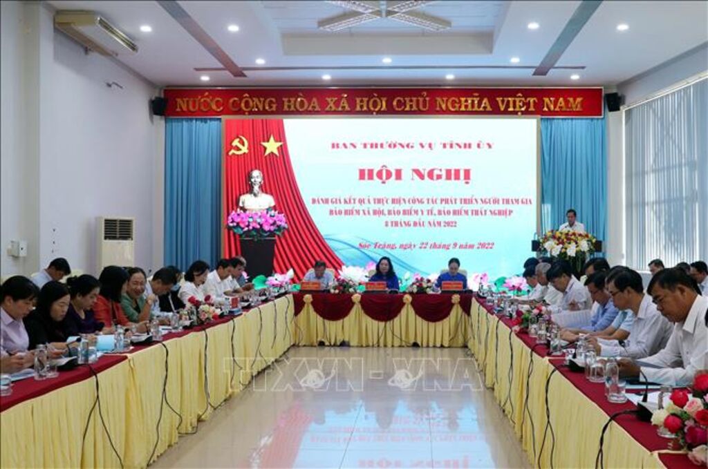 TTXVN - Ngày 22/9, Ban Thường vụ Tỉnh ủy Sóc Trăng tổ chức Hội nghị đánh giá kết quả thực hiện công tác phát triển người tham gia bảo hiểm xã hội, bảo hiểm y tế, bảo hiểm thất nghiệp 8 tháng của năm 2022.