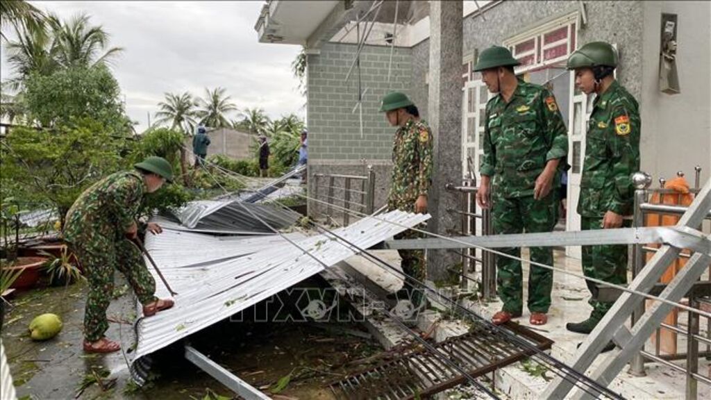 TTXVN - Sáng 31/7, tại thị trấn Lịch Hội Thượng, huyện Trần Đề (Sóc Trăng), mưa to, kèm theo dông lốc đã làm 3 người bị thương, nhiều nhà dân bị sập, tốc mái.