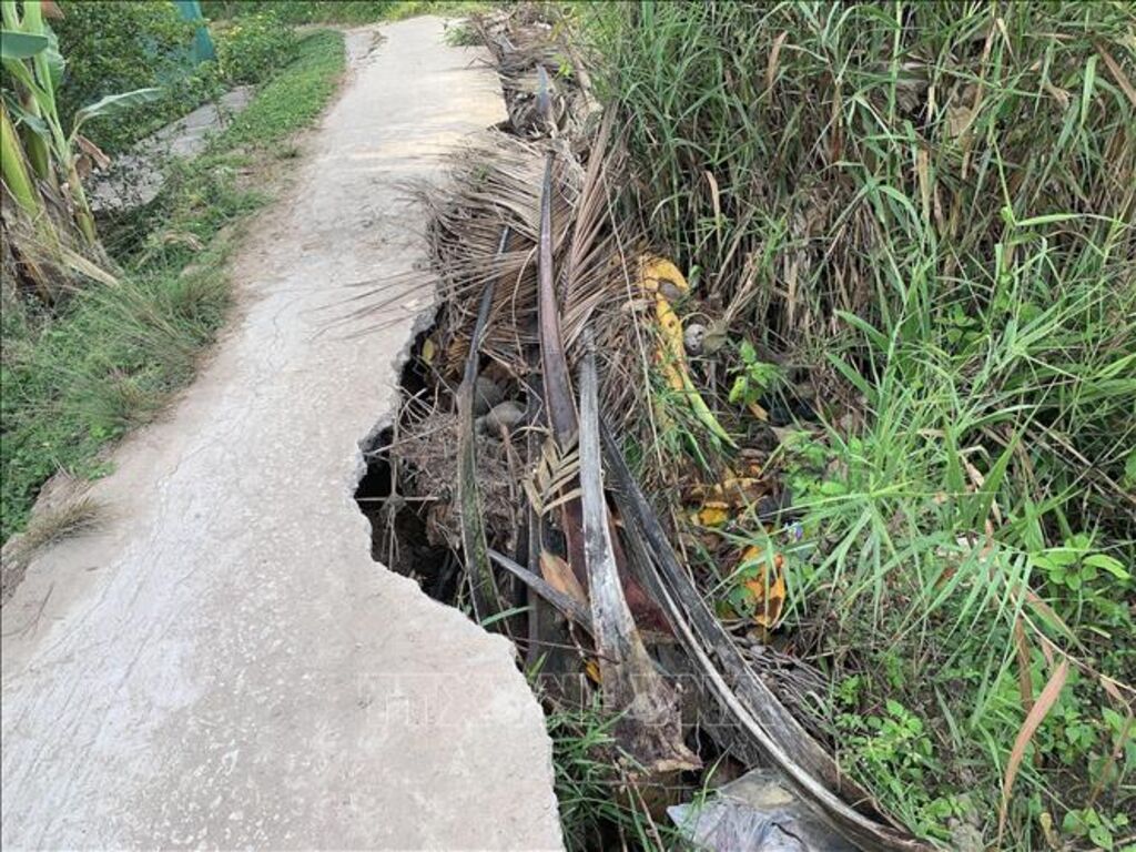 TTXVN - Những ngày qua, tình trạng sạt lở bờ sông diễn biến phức tạp và ngày càng nghiêm trọng tại huyện Kế Sách, tỉnh Sóc Trăng, làm hư hỏng các công trình hạ tầng, ảnh hưởng đến đời sống, sinh hoạt của người dân ở địa phương.