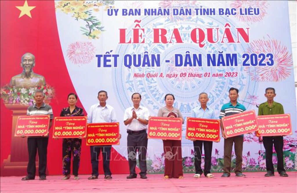 (TTXVN) Ngày 9/1, Ban Tổ chức Tết Quân - Dân tỉnh Bạc Liêu phối hợp với UBND huyện Hồng Dân tổ chức Lễ ra quân Tết Quân - Dân 2023 tại xã Ninh Quới A.