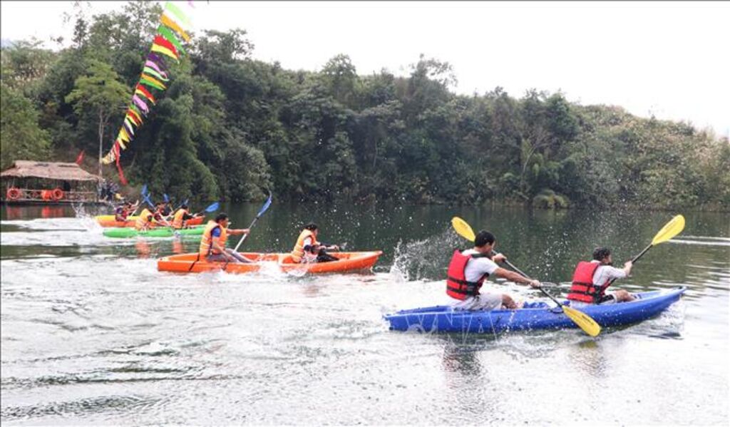 TTXVN - Trong khuôn khổ Chương trình Chào năm mới năm 2024 của UBND huyện Than Uyên, tỉnh Lai Châu, ngày 31/12, Giải đua thuyền Kayak và trình diễn mô tô nước với chủ đề “Lướt giữa đại ngàn Pá Khôm” đã diễn ra tại vịnh Pá Khôm, xã Pha Mu.